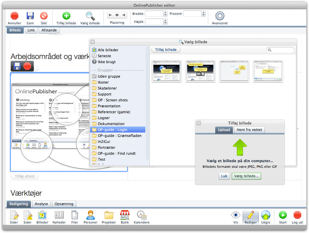 Et område der er fokuseret meget på er billedhåndtering. En meget anvendelig feature er at man ikke behøver at skalere billedet inden det tilføjes til systemet. I stedet skaleres billedet først når det indsættes i siden.