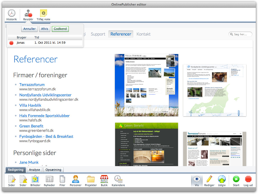 Disse skærmbilleder giver indblik i hvordan systemet fungerer.