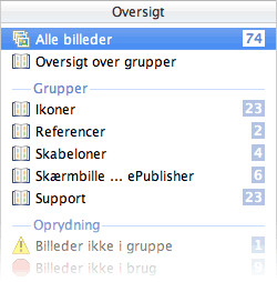 Med billedværktøjet har man et samlet sted hvor man kan se og organisere alle sine billeder. Du kan organisere billederne i grupper hvor samme billede kan optræde i flere grupper. Desuden kan du få et hurtigt overblik over hvilke billeder der ikke er i brug.